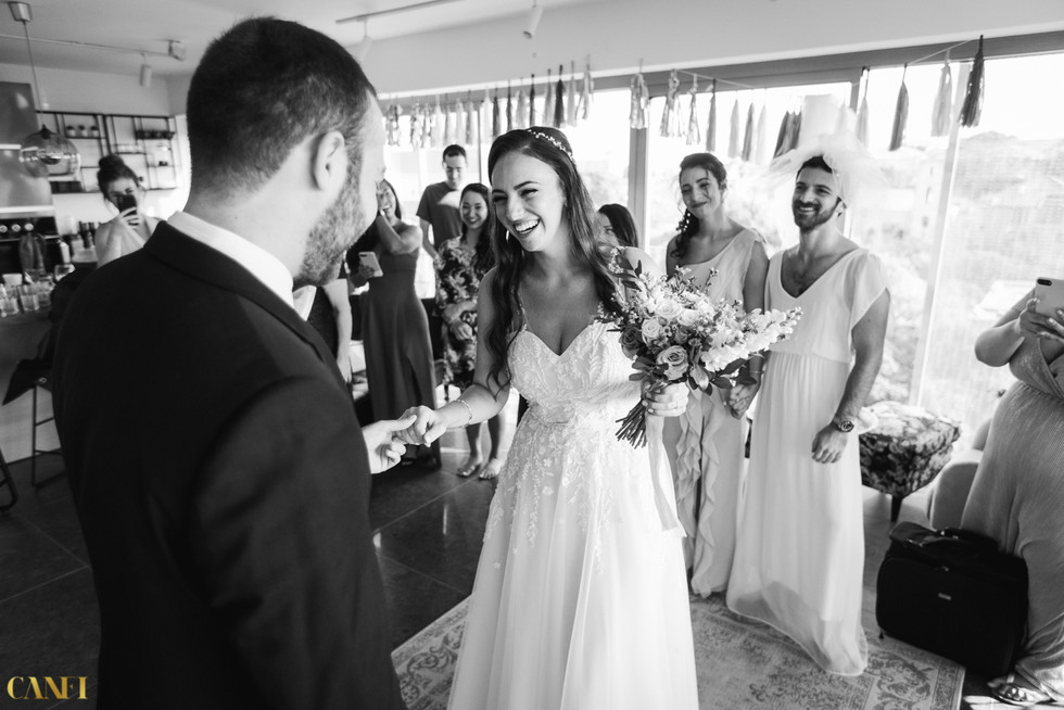 We first took a day to shoot a beautiful engagement session in the north of Israel and the chemistry was just perfect, and the photos WOW! This couple knows how to move infront of the camera... On the wedding day we met at a classy apartment in a central neighborhood in Jaffa, Maya was surrounded with about 10 bridesmaids all super excited and a few family members. It was stunning seeing everybody so enthusiastic about their big day.