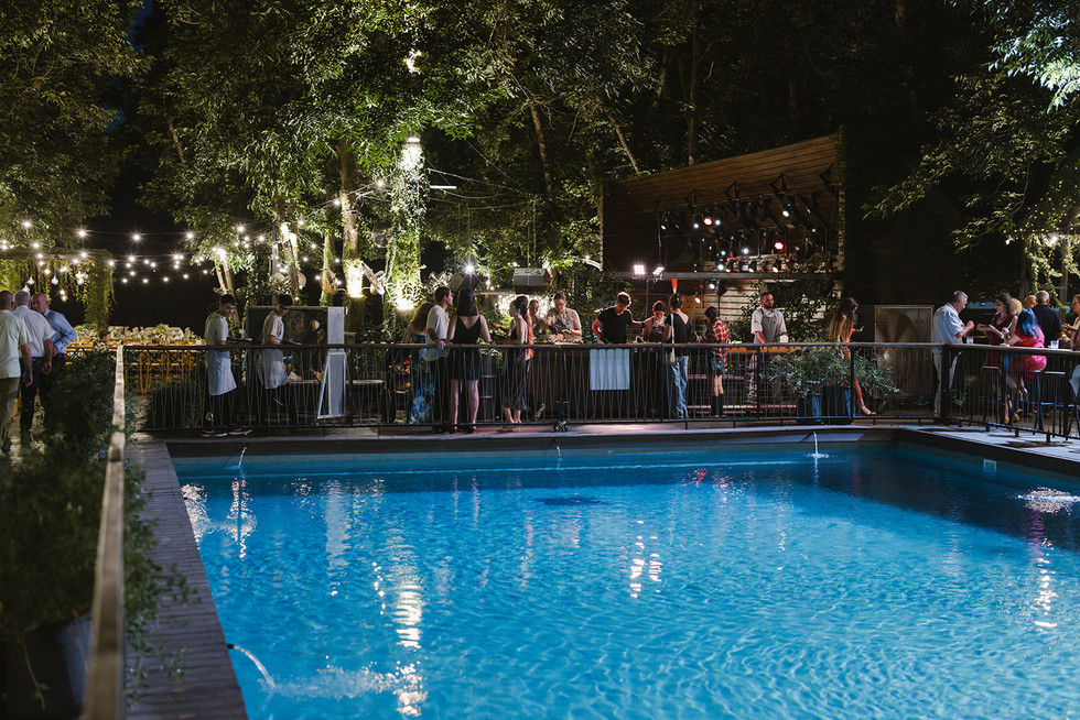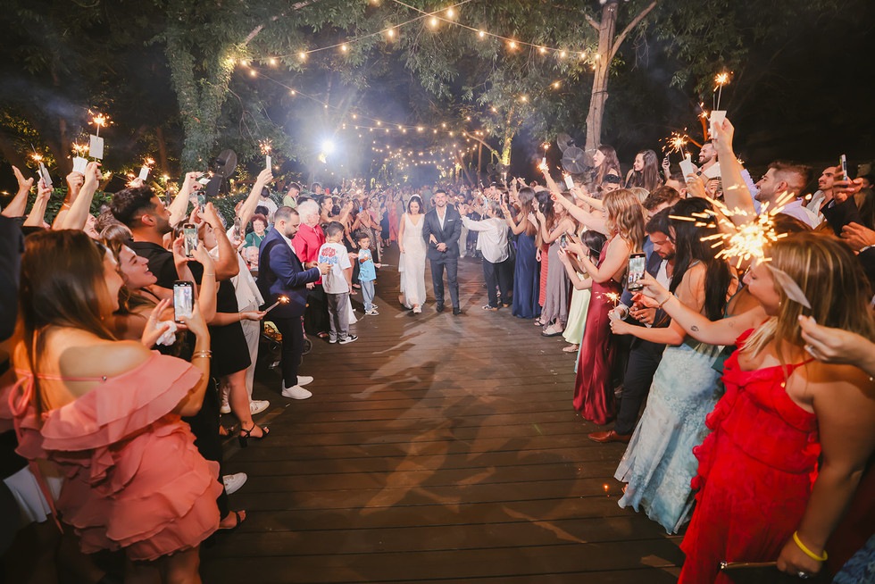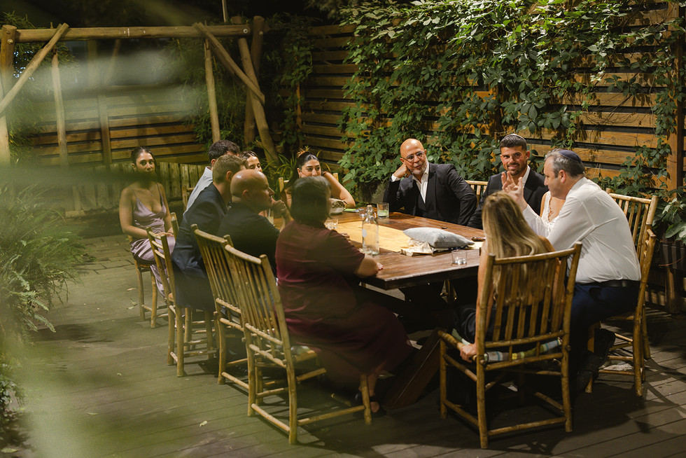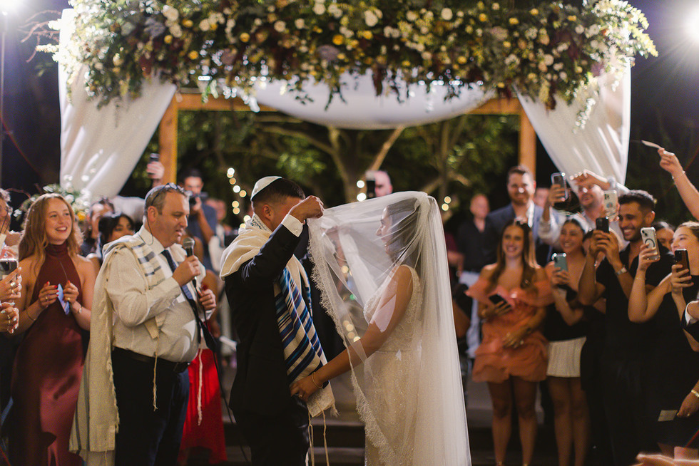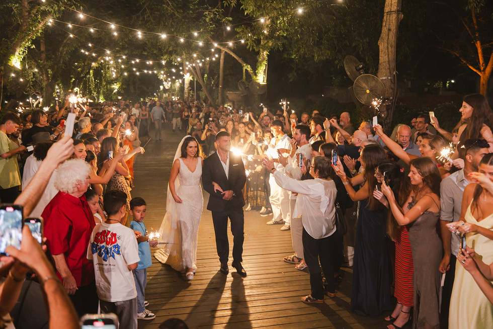החתונה נערכה בנחלה, לוקיישן קסום בלב המטע. מעבר לעיצוב המוקפד, הבחירה בקייטרינג טבעוני עשיר ומגוון הראתה שאפשר לעשות חתונה ענקית (מעל 500 איש!) בלי להתפשר על איכות קולינרית וחוויה בלתי נשכחת. החופה תחת העצים והמסיבה שנמשכה עמוק אל הלילה היו הסיומת המושלמת ליום הזה.