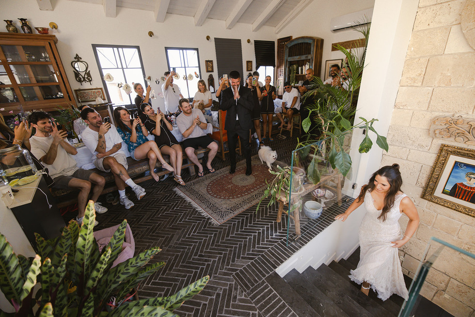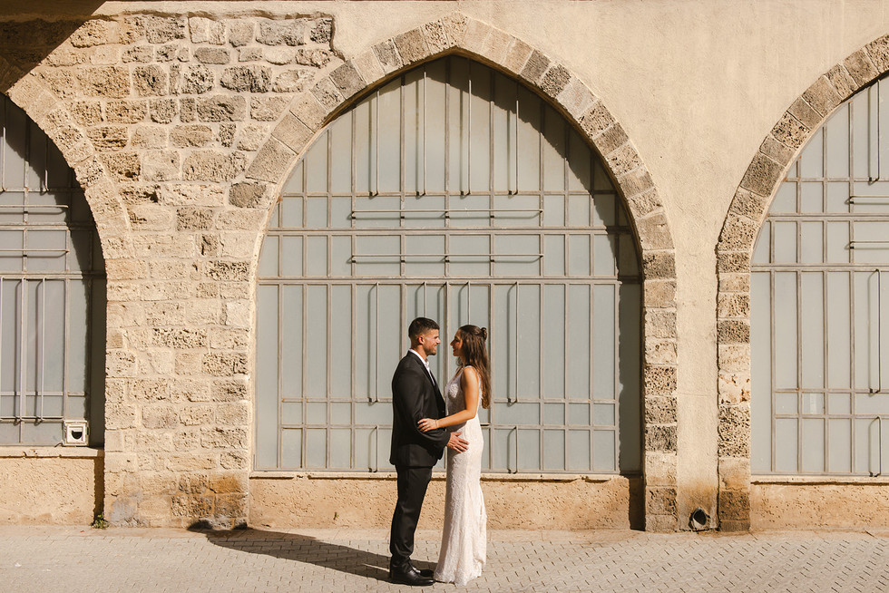 היום התחיל בדירת התארגנות מהממת ביפו. האור היפואי בשילוב הקשתות והארכיטקטורה המקומית היו תפאורה מושלמת לזוג עם סטייל כמו שלהם. בחרנו לשחק עם הניגודיות של האור והצל, מה שהעניק לצילומי הזוגיות מראה אומנתי ומודרני.